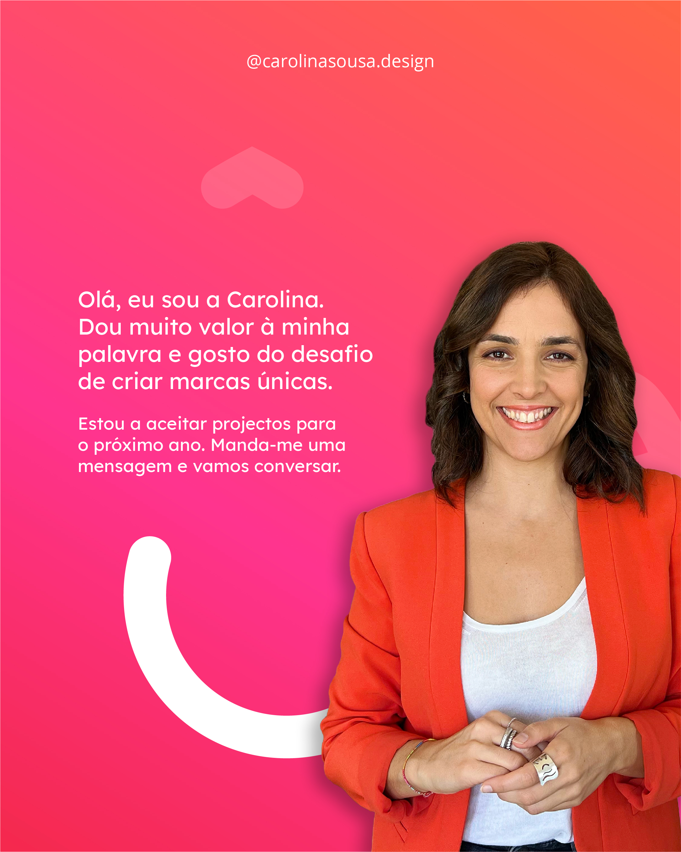O sorriso define muito a nossa identidade. Como pessoa alegre que sou, queria que a identidade da minha marca refleti-se isso mesmo, alegria, sorriso e confiança.
